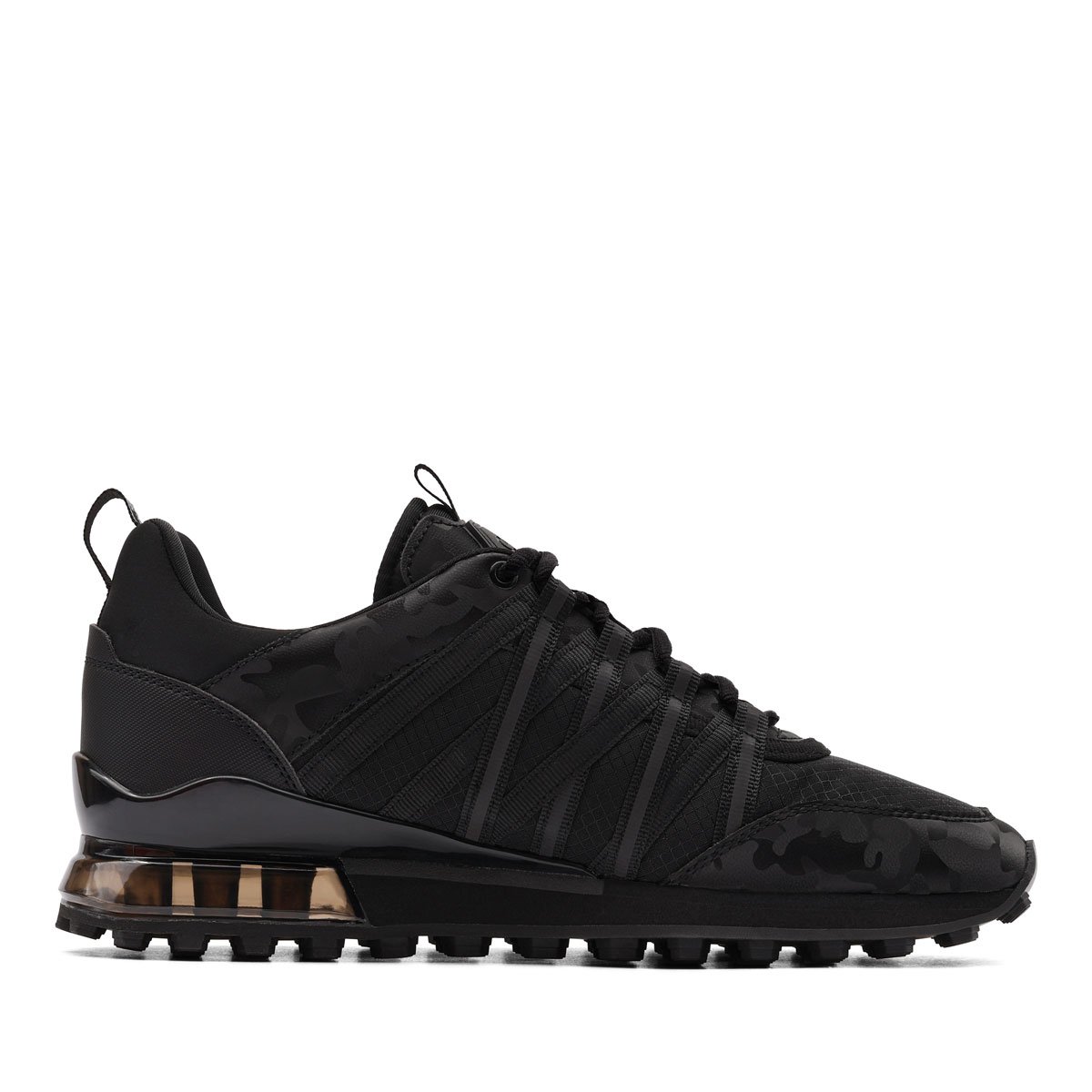 Междинната подметка е с пяна, абсорбираща напрежението образувано от допира с повърхността. В петата е добавен стабилизиращ прозрачен панел, който е ефектен завършек на цялостната визия.